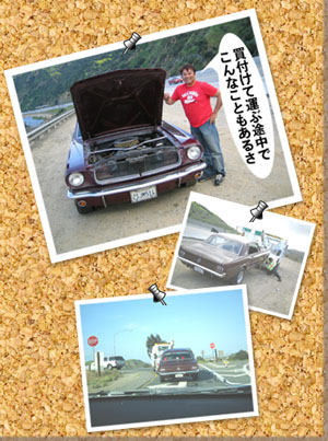 ご依頼いただいた場合、各地のスワップミートと呼ばれる、コレクターの人たちの個人売買イベントや、インターネットのオークション、雑誌や新聞の売りたし買いたし欄、業者間の情報と、さまざまなノウハウと交渉術で買い付けますが、その際、時には国際電話でお客様に、その場から車の状態、メンテナンス費用の見積もりなどを報告して、相手と交渉しながら買い付けるという離れ業もやってのけます。