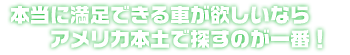お店の在庫を見て、話しかけてくださるお客様とお話をしていると、本当に欲しいのはこの車!という言葉をよく聞きます。そんな方は、どんなに在庫の車がよく見えても、それに手を伸ばさないで、ちょっとご相談ください。お時間をいただければ、本当にこれならと思う車をアメリカで直接買い付けてきます。どうせ、定期的に買付けに行くのですから、そのときにお客様の好みの車をお探しします。